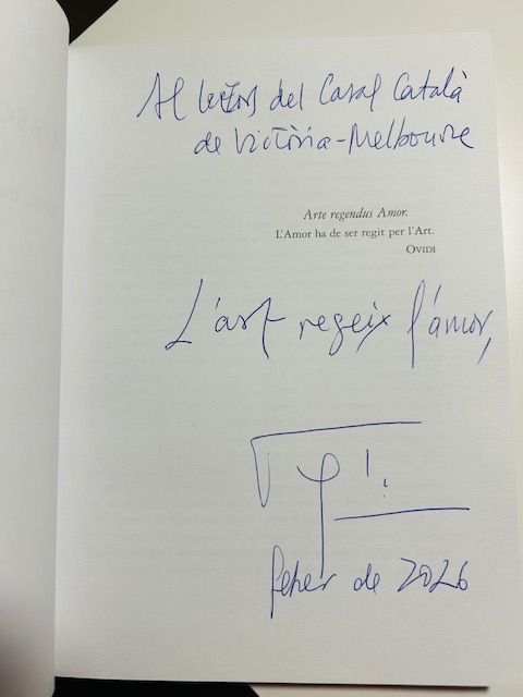 Finalment, també volem agrair el llibre de Vicenç Altaió, especialment dedicat al Casal, que en Joan ens va regalar, un record molt especial d’aquesta vetllada.